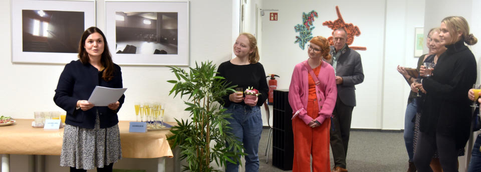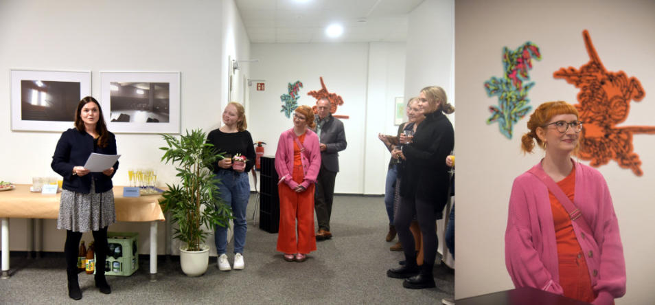 Am Nachmittag des 5. Oktober 2022 fand im Studienseminar Oldenburg eine Vernissage zur Ausstellung _fabelhaft_knallig_filigran_ der Oldenburger Künstlerin und ehemaligen Referendarin des Studienseminars Anna Horreis statt. Die Referendar:innen für das Fach Kunst haben die Ausstellung gemeinsam mit ihrer Fachleiterin Angelika Feldhege und im Austausch mit der Künstlerin konzipiert. ALS PDF: Lesen Sie HIER den Bericht von Janna Otten mit den Fotos